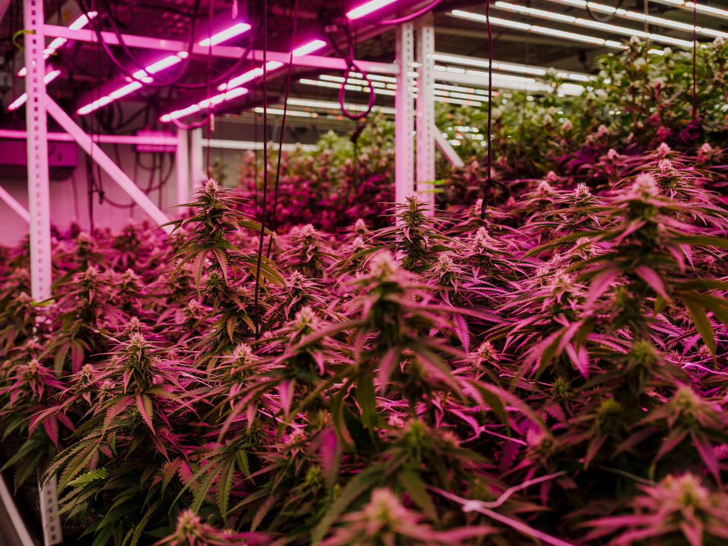 We use LED lights in our grow. It’s more power efficient and provides a broader light spectrum compared to your standard grow. We also use 50% less energy, because of this. The plants will spend all of their lifecycle under LED lights, which is around 100 to 130 days depending on the strain.